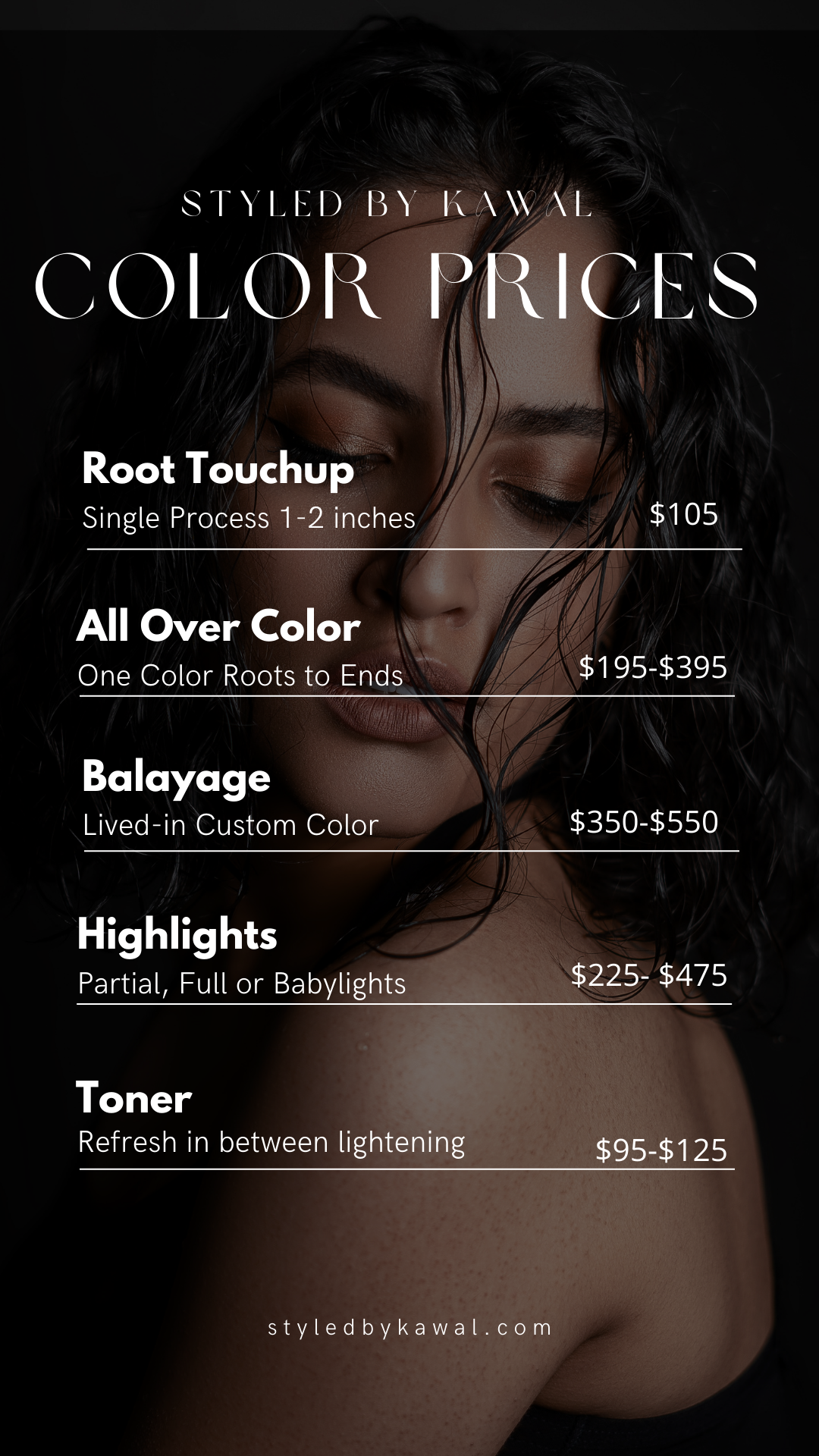 Independent Hairstylist with nearly 15 years of experience as a hair artist, Kawal has perfected her craft when it comes to Coloring and Cutting hair. Kawal specializes in all things Hair Color & Cuts and offers Smoothing Treatments for unmanageable hair textures. If you are looking for a hairdresser who cares about your hair goals, Kawal is your stylist.
